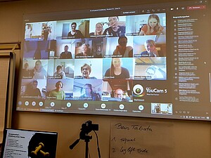 Gemeinsam wurden die Themen in Theorie und Praxis per Teams-Livestream von der BTB-Geschäftsstelle aus unterrichtet. Für die "Regie" gab es Unterstützung durch Christine Hornung, die wie in einem Fernsehstudio die Schaltung auf Präsentation, Kamera für den aktiven sportlichen Teil etc. vornahm, die eingehenden Fragen im Chat beantwortete und technischen Support für die Teilnehmerinnen und Teilnehmer gab.