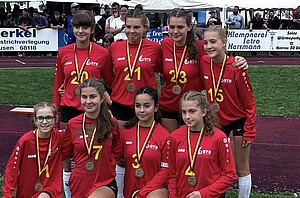Nach der Anreise und der Einkleidung der Spieler:innen am Freitag Abend, ging es zeitig in die Betten. Heute früh sind wir nach dem gemeinsamen Frühstück zeitig am Platz gewesen und bereits im zweiten Durchgang ins Turnier gestartet. Unsere U18 Jungs haben in der Vorrunde keinen durschlagenden Erfolg gehabt. Drei mal unentschieden gegen Sachsen (7:11, 11:5), Westfalen (11:9, 7:11) und Rheinland (6:11, 11:5), zeigten durchwachsene Ergebnisse und zuletzt eine Niederlage gegen Schwaben (11:13, 5:11) langten nur für den vierten Tabellenplatz. Morgen geht es jetzt noch um Platz 7. Bei den U18 Mädels lief es deutlich schwieriger. Mit drei Niederlagen gegen Rheinland (9:11, 4:11), Schwaben (13:11, 11,4) und Schleswig-Holstein (11:6, 11:2), sowie einem Sieg gegen Thüringen (11:7, 11:5) wurde das volle Potential nicht abgerufen und es reichte leider auch nur zum vierten Tabellenplatz. Damit geht auch für die Mädels morgen noch um Platz 7. Besser lief es für die U14 Jungs. Zwei solide Siege gegen Rheinland (11:7, 11:7) und Hessen (11:6, 11:6) und zwei Niederlagen gegen Schwaben (11:8, 11:8) und Niedersachsen (11:5, 11:7) reichten für den dritten Tabellenplatz. Somit geht es morgen noch um den Einzug ins Halbfinale. Für eine große Überraschung sorgten unsere U14 Mädels. Ein glatten Durchmarsch mit vier Siegen gegen Westfalen (11:8, 11,6), Schwaben (11:7, 11:8), Schleswig-Holstein (11:4, 11:7) und Thüringen (11:3, 11:8) und dem daraus folgenden Tabellen Sieg, geht es direkt ins Halbfinale. Wir freuen uns auf den morgigen Tag!