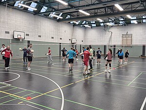 Besondere Gäste in der Kurstadt waren zwei Sportlehrer der benachbarten Realschule Sinzheim - beide zeigten sich begeistert von der Sportart - sowie der australische Nationalspieler Emlyn Evans. Der 25-jährige Sydneysider spielt in der aktuellen Hallensaison für den FBC Offenburg und berichtete von den laufenden Faustballaktivitäten in Australien und Neuseeland.