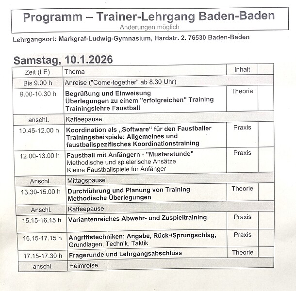 Unter der Leitung von Landeslehrwart Rainer Frommknecht (Waibstadt) standen vielfältige Themen in Theorie und insbesondere Praxis zum Anfängertraining auf dem Programm. Der Dank gilt der TG Baden-Baden um Abteilungsleiter Jürgen Hund für die hervorragende Ausrichtung und Verpflegung.