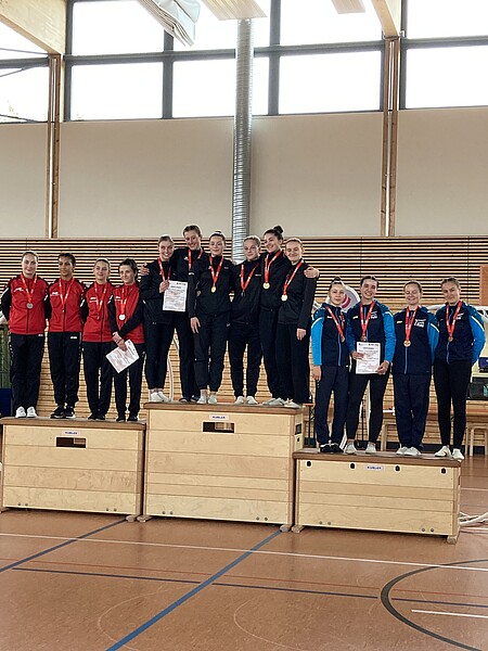 Geturnt und gewertet haben: Johanna Bischof, Emma Fink, Stefanie Peisker, Sophie Schmitt und Daniela Weber (TV Neckargemünd), Jana Exner (TB Wilferdingen) und Lena Mobers vom TV Wyhl.