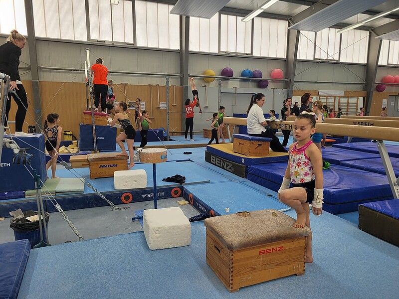 Im Mittelpunkt stand dabei die intensive Arbeit an allen vier olympischen Geräten – Sprung, Stufenbarren, Schwebebalken und Boden. Unter der sportlichen Leitung von Anna Kaletsch, Leiterin der DTB Turn-Talent-Schule am Mannheimer Stützpunkt, wurde der Trainingstag strukturiert, anspruchsvoll und zugleich altersgerecht gestaltet. Ergänzt wurde das Gerätetraining durch vielseitige gymnastische Einheiten, gezielte Kraft- und Laufelemente sowie spezifische Trainingsformen am Schlaufenreck – ein Gesamtpaket, das den hohen Qualitätsanspruch des Standorts eindrucksvoll widerspiegelte.