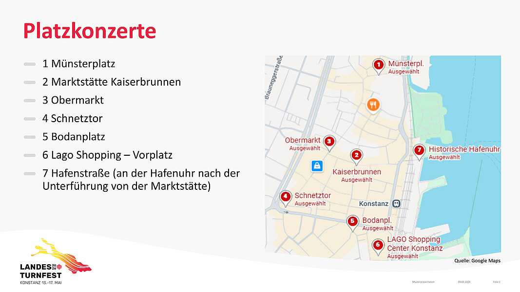 Meldet euch jetzt mit eurem Spielmannszug und nutzt die Gelegenheit, euch während des Turnfestes nicht nur den Turnfestteilnehmern, sondern auch der Konstanzer Bevölkerung zu präsentieren. An sechs prominenten Plätzen in Konstanz könnt ihr zu den für euch passenden Zeiten zeigen, was ihr könnt.