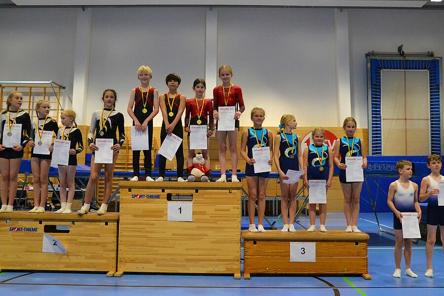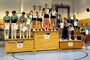 Viele hochklassige Übungen durfte das Publikum in der gut besetzten Altersklasse 12-14 bewundern. Auch hier konnte man nach dem Vorkampf ein spannendes Finale erwarten, denn die ersten drei Plätze trennten nur 0,6 Punkte. Am Ende konnte das Team des TV Ichenheim sich vom dritten auf den ersten Rang nach vorne arbeiten und sicherte sich mit drei Punkten Vorsprung den Titel, was vor allem der geschlossenen Mannschaftsleistung zu verdanken war. Silber ging an den ASV Wolfartsweier, Bronze an den TV Nöttingen.