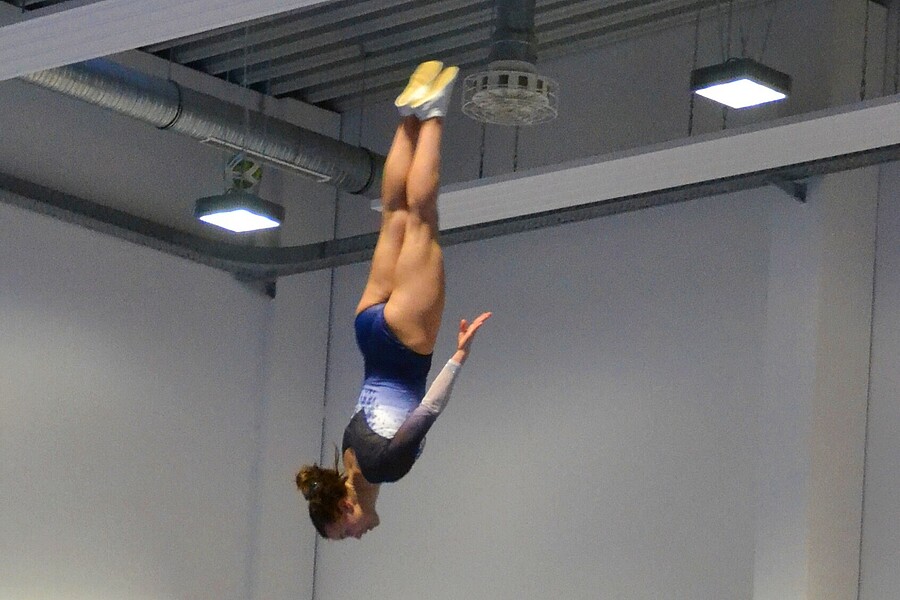 Bereits zu Beginn wurde es spannend. In der Altersklasse bis 11 Jahre trennten nach dem Vorkampf aus Pflicht und Kür nur 0,26 Punkte die führende Mannschaft des TSV Mannheim von ihren Verfolgern der TG Neureut – und das bei einer Gesamtpunktzahl von 220,61 Punkten! Den dritten Finalplatz sicherte sich der ASV Wolfartsweier, ebenfalls nur sehr knapp vor dem Team des TV Ichenheim. Im Finale änderte sich an dieser Reihenfolge nichts mehr, was vor allem an der starken Finalkür der Landeskaderathletin Emilia Zeimer aus Mannheim lag, die als einzige über 40 Punkte erturnte.