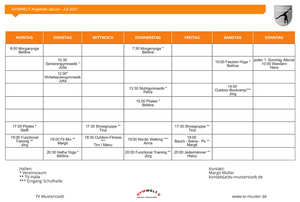 Der Stundenplan ist als Tabelle von Montag bis Freitag vorangelegt, allerdings ist die Spaltenanzahl durch einen Rechtsklick an die Bedürfnisse des Vereins anzupassen. So kann durch kleine Anpassungen ein Stundenplan von Montag bis Sonntag eingefügt werden. Ebenso verhält es sich mit der Zeilenanzahl: Je nach Bedarf können über einen Klick auf die rechte Maustaste Zeilen für zusätzliche Angebote hinzugefügt oder für einen kompakteren Plan entfernt werden.